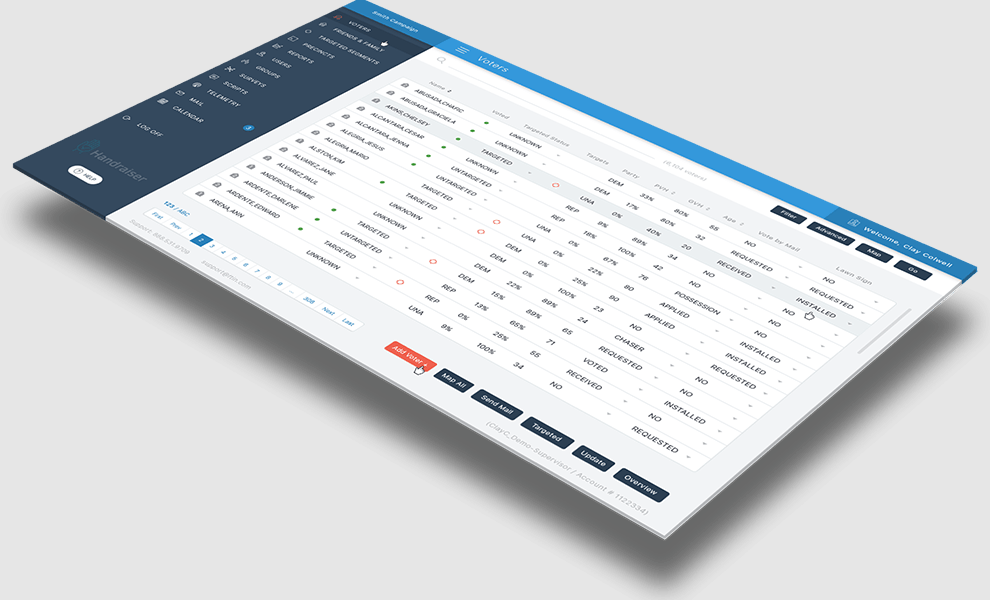 Cutting edge software & mobile apps to help you manage any type of campaign. Handraiser identifies, activates and measures the participation of every voter that will help you win an election. Used by political campaigns of all sizes, businesses, non-profits, ballot initiatives, referendums and more. Handraiser brings a rich variety of historical voter data together in one place, so that your campaign can quickly identify the voters most likely to support your campaign, up until the polls close. Handraiser’s voter relationship management tools allow your campaign to reach and activate voters with the right message at the right time, through the most effective communication channels. Handraiser gives your volunteers the ability to capture live polling place data on election day, enabling you to make quick field ops decisions that can influence results. Search, filter, segment and target voters based on friends and family status, key demographics and voting history.