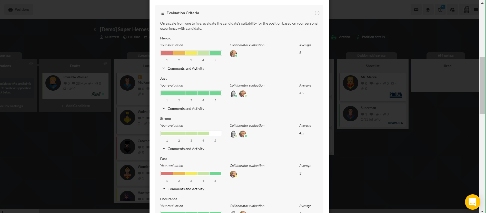 Sharing, reviewing, and scoring functionality means you can improve collaboration in your hiring teams, without everyone having to be present at the same time!