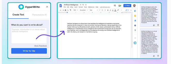 HyperWrite provides suggestions and sentence completions to improve your writing, wherever you write. Try out our free demo of AutoWrite, AutoImage, and TypeAhead here! Get HyperWrite for free to start writing better, today! Hyper works on your favorite websites and apps, so you can get suggestions no matter where you're writing. You need HyperWrite, the AI-powered writing assistant that helps you write and create anything in seconds. Whether you’re writing a blog post, an email, a report, a story, or anything else, HyperWrite can help you generate, improve, and customize your content with ease. HyperWrite is not only a spell checker or a grammar tool. It’s a powerful and intelligent writing partner that can generate original and engaging content for you, based on your instructions. Tell HyperWrite what you want to write, and it will give you five possible options to choose from. You can use this feature for any type of writing, from web copy to fiction.