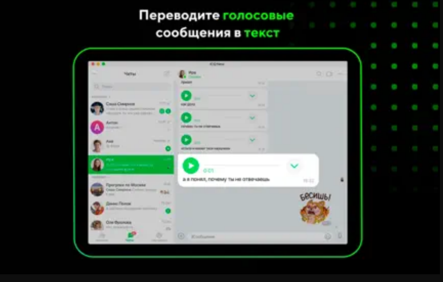 Convert audio messages to text, use smart replies, stay online even with bad internet connection. ICQ works stably in the forest, and in bad weather, and when the provider has problems, and you are almost offline. ICQ converts voice messages into text - it will help you on the subway, at a couple, a meeting, or when you forgot your headphones. Read and subscribe to interesting channels, create group chats and chat with friends, use bots that make life easier. Have time to take a beautiful nickname with your first and last name. Plus to confidentiality — it is not necessary to share number. When the conversation gets boring, try on a mask. We made 30 animated 3D masks with familiar and unusual scenes. If you want to show beautiful photos and videos in high quality, send them without compression. And if the quality is not important, the file will be sent in a couple of seconds.