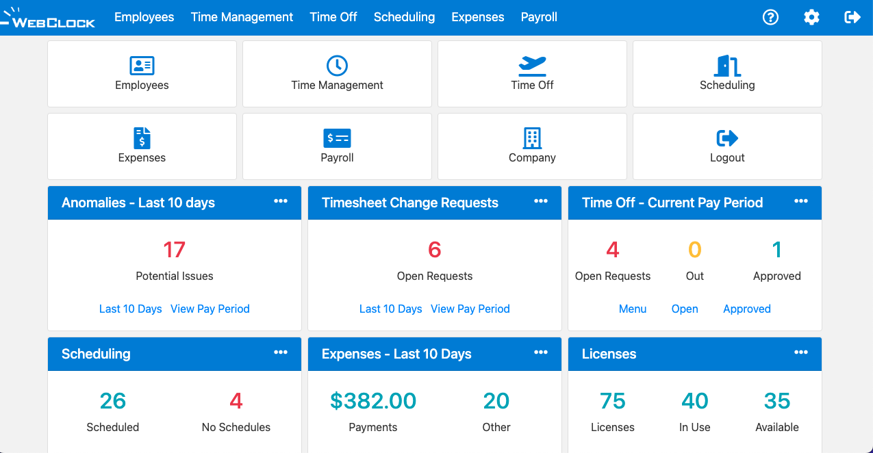 Overall: We have had a great experience with WebClock so far. We would recommend this product to anyone needing a time tracking system.