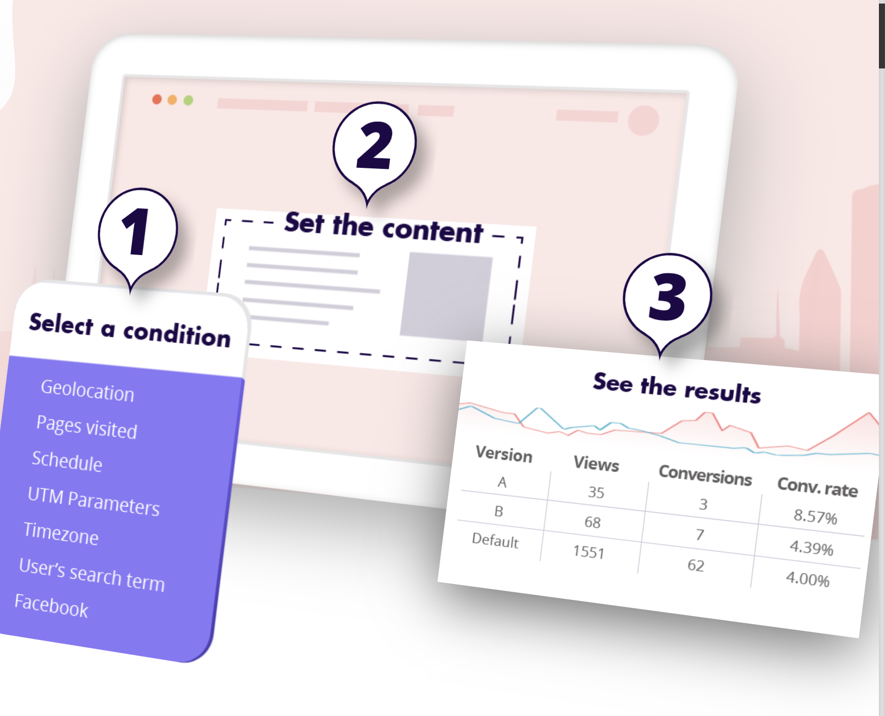 If-So is a simple WordPress plugin, allowing you to add or replace content on your website based on the visitors’ profile or interaction with the site. Your visitors will engage, convert and buy more! Set content according to the visitor’s country, city, state, or continent Schedule content changes between a range of dates. Schedule content according to the time and day of the week. Attract attention with messages in the visitor’s language. Show specific content to visitors arriving from a custom link. Customize the content to visitors referred from a chosen domain or webpage. Load different content on desktops, tablets, or mobiles. Replace calls to action according to the number of visits a user visited in the site. Show different content to visitors from different time zones. Customize the content to visitors who have been visited a chosen page on your website. Optimize content by split testing two to four content variations.