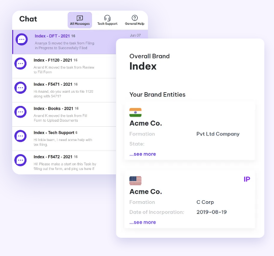 Collaborate with your CPA/bookkeeper through chats and attachments. Secure vault to upload, permanently store and archive letters received by your US entity. Inkle Tax interface provides you with the following set of tools to help you with your tax and compliance-related needs. Dates, identifiers, states, addresses, officers, Board tracking - all in one place. Easy calculation summaries, deadline tracking, filed documents history. Track your transactions & volume of expenses, switching accounting methods from cash to Accrual, and see Inkle's clear charges. All communication is secured by using SSL AES 256-bit encryption. This is the highest level of encryption commercially available. Your passwords are encrypted and inaccessible even to us. Inkle team members use SSO where possible for all software or encrypted password vaults with randomized passwords.