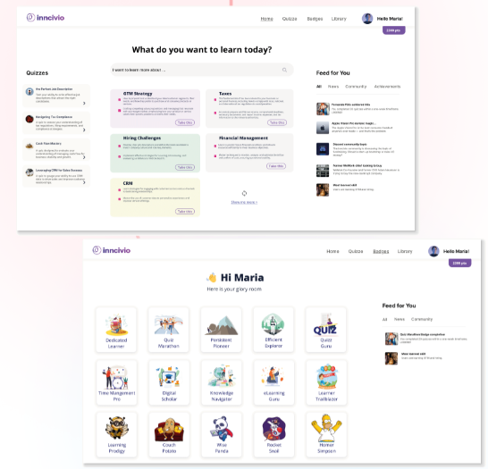 At Inncivio, we're revolutionizing education for businesses with our AI-powered platform. Dive into a world where learning is a shared adventure, innovation is a lifestyle, and success is a journey. Fully personalized curriculums based on the knowledge base of the company, created on the go. Personalize your knowledge library, so that your team benefits the most from Inncivio. Quiz your knowledge and earn badges as you progress. Integrated access to news, team updates, and achievements. When you hear your team speaking about the Inncivio league in the corridor, you know your next quarter performance won't disappoint you. We help businesses empower their team members by creating personalized content on the go to enhance their skills. Explore firsthand how Inncivio can transform your business's journey. Inncivio tackles the daily challenges of businesses and beyond. Elevate your skills, expand your horizons, and enjoy the journey with Inncivio.