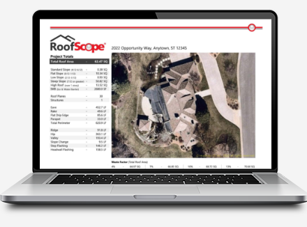 Enter the address or coordinates of a structure you'd like to measure. Simply enter the address of the structure you want to be measured and confirm the pin in is the correct spot. Select your structure type and add any auxiliary buildings needed (garages, sheds, pool houses, etc.). Select the type(s) of report you need for your structure, then add them to your cart. Use ScopeApp to collect field data quickly so that you can provide your customers with accurate estimates and reduce costly material overages. Watch the explainer video to see how it works or download it from the App Store or Google Play and start scoping. RoofScope works with leading construction, insurance, technology, and distribution companies to integrate our reporting data into your workflow. With a 99% accuracy rate and 12 hours or less turnaround time guarantees, RoofScope aerial measurement reports save you time and the hassles of having to re-measure a roof, recalculate data or hand-draft aerial takeoff reports.