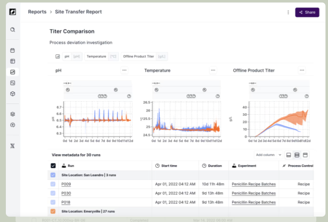 Invert offers a complete suite for collecting, cleaning, and contextualizing data, ensuring every analysis and insight is based on reliable, organized data. Invert collects and standardizes all your bioprocess data, with powerful, built-in products for analysis, machine learning, and modeling. Clean, standardized data is just the beginning. Explore our suite of data management, analysis, and modeling tools. Replace manual workflows in spreadsheets or statistical software. Calculate anything using powerful statistical features. Automatically generate reports based on recent runs. Add interactive plots, calculations, and comments and share with internal or external collaborators. Streamline planning, coordination, and execution of experiments. Easily find the data you need, and deep dive into any analysis you'd like. From integration to analysis to modeling, find all the tools you need to manage and make sense of your data.