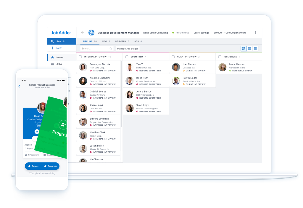Built for staffing agency and in-house corporate recruiters alike - all jobs, candidates, communication and tasks are streamlined through JobAdder’s user-friendly, customisable dashboard. An entirely cloud-based system, the modern user has total flexibility to recruit on the go from any mobile device.