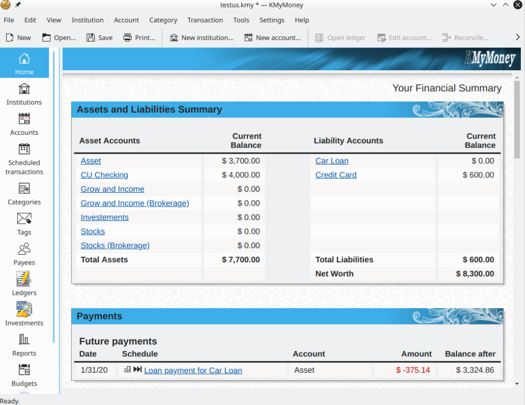 KMyMoney is a cross-platform personal finance manager build on KDE frameworks technologies for your desktop and notebook environment. It enables users to keep careful track of their personal finances by providing a broad array of financial features and tools. KMyMoney strives to be the easiest open source personal finance manager to use, especially for the non-technical user. KMyMoney already provides the most important features found in commercially-available personal finance managers and we are constantly planning, testing and releasing new features to fit every task you'll ever encounter. Using time-tested, double-entry accounting principles, KMyMoney can help ensure that your finances are recorded as they should.
