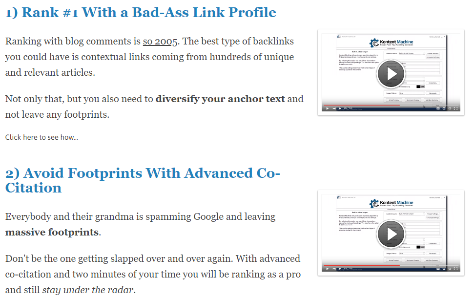 Ranking with blog comments is so 2005. The best type of backlinks you could have is contextual links coming from hundreds of unique and relevant articles. Not only that, but you also need to diversify your anchor text and not leave any footprints. Everybody and their grandma is spamming Google and leaving massive footprints. Don't be the one getting slapped over and over again. With advanced co-citation and two minutes of your time you will be ranking as a pro and still stay under the radar. The quickest way to get your website sandboxed is linking to your homepage only. Create super-spun articles out of any seed keyword. Build every type of hyperlink that you need for your SEO campaigns. Create and upload your campaigns to the cloud. You can then pull them in whatever tool you want to. Push and schedule content for your blog networks with a couple of clicks. Build super-spun articles out of your locally saved text files.
