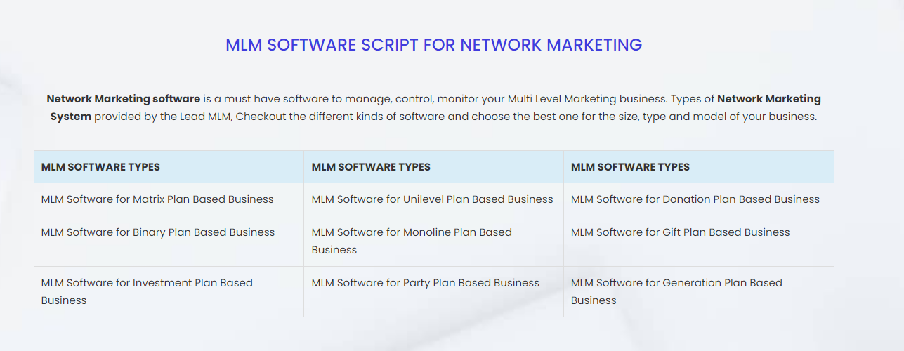 Network Marketing software is a must have software to manage, control, monitor your Multi Level Marketing business. Types of Network Marketing System provided by the Lead MLM, Checkout the different kinds of software and choose the best one for the size, type and model of your business. Lead MLM Software is one of the pioneering reliable software company, which excels in providing a complete solution for Network Marketing business. Over the years, we have worked passionately in assisting major MLM business firms across locations with fully featured MLM Plans that are required by the Multi Level Marketing Companies. With our highly qualified and technology-driven team, we ensure to cater every aspect in the MLM business. Script solutions designed to integrate with various e-commerce platforms are our expertise, that makes us stand out in the crowd.
