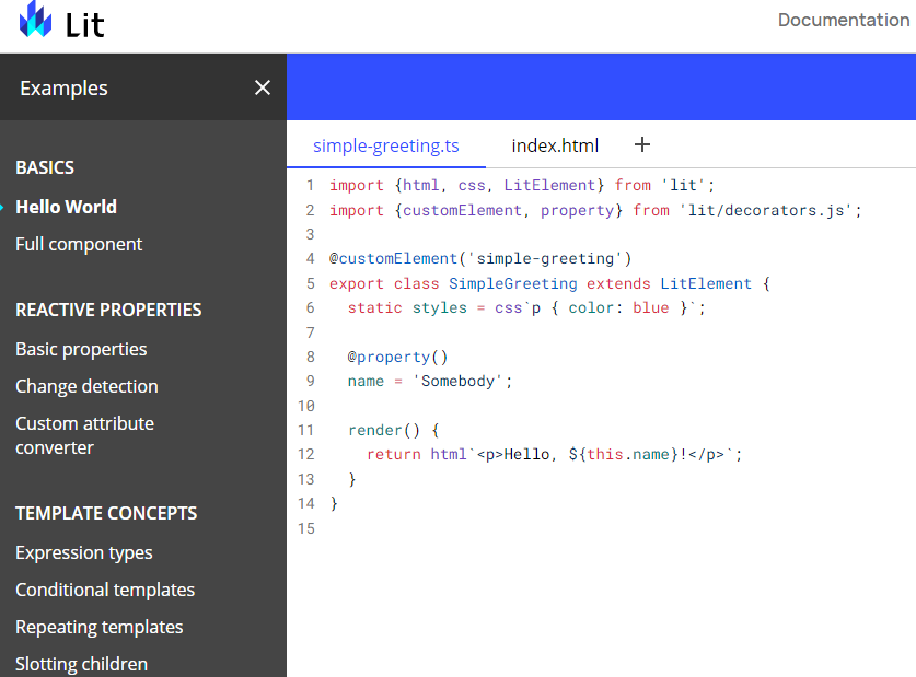Building on top of the Web Components standards, Lit adds just what you need to be happy and productive: reactivity, declarative templates and a handful of thoughtful features to reduce boilerplate and make your job easier. Every Lit feature is carefully designed with web platform evolution in mind. Weighing in at around 5 KB (minified and compressed), Lit helps keep your bundle size small and your loading time short. And rendering is blazing fast, because Lit touches only the dynamic parts of your UI when updating — no need to rebuild a virtual tree and diff it with the DOM. Every Lit component is a native web component, with the superpower of interoperability. Web components work anywhere you use HTML, with any framework or none at all. This makes Lit ideal for building shareable components, design systems, or maintainable, future-ready sites and apps.