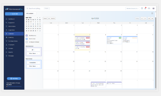 Maintenance Pro Web is a cloud-based computerized maintenance management system designed to help organizations track and manage preventive and repair maintenance for equipment, facilities, and assets from any device with an internet connection. It provides centralized access to maintenance data, enabling users to monitor assets, schedule tasks, and manage operations in real time regardless of location. It allows users to create and track work orders from initial notification through completion, assign tasks to technicians, and monitor progress to ensure timely execution. Preventive maintenance can be scheduled based on time intervals, specific dates, or usage metrics, with automatic notifications delivered via on-screen alerts, email, or mobile devices when service is due. It also supports repair request management, allowing operators to log issues that can be converted into work orders for corrective action.