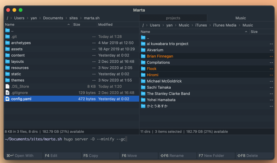 Dual-pane file manager with classic design. Familiar Mac swiftness, charged for power users. Software developers, system administrators, and IT professionals and enthusiasts. Nimble Commander is built with efficiency in mind to ensure the minimum consumption of system resources. Written mostly in C++, it provides blazing performance and instantaneous user interface response. For instance, handling dozens of windows and tabs is no big deal. Following the strong traditions of orthodox dual-panel file managers, Nimble Commander provides quick keyboard access to file management operations. To save you time, there are keyboard shortcuts for more than a hundred actions. Nimble Commander is designed to be flexible and comfortable for a vast range of uses. Colors, sizes, fonts, presentation types, filename trimming, quick search behavior, external tools, terminal emulator position, hotkeys layout, you can customize all of that.