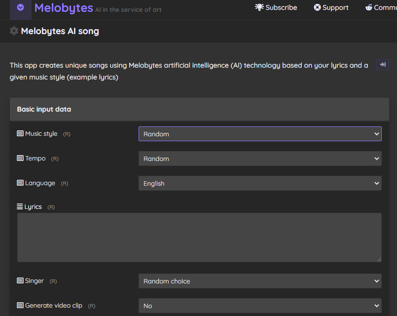 This app creates unique songs using Melobytes artificial intelligence (AI) technology based on your lyrics and a given music style (example lyrics). Melobytes helps musicians, artists, YouTubers, and everyone who feels creative to get inspiration, discover new ideas & generate original content. All apps are producing procedurally unique results, so what you get is only for you. Unlimited access to all current apps for a week. High queue priority, uncropped generated video & audio. App execution history, app execution cancellation, background app execution, and quick feedback on app results.