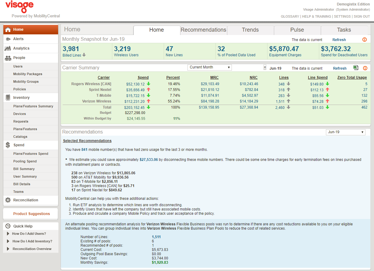 You're focused on reducing wireless costs for your company, or your customers. Use Visage Mobile's state-of-the-art software, MobilityCentral, to affordably manage any wireless program. Need to have someone do the work for you? Visage Mobile does that too! Our audit, optimization, procurement, and fulfillment services deliver the results you're looking for at a low cost. What sets us apart is our software, the decades of wireless expertise which backs it up, and the services we deliver.