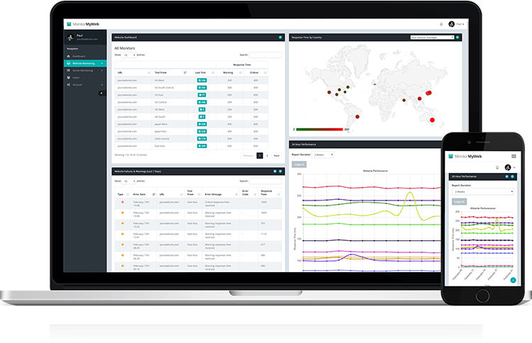 Website performance monitoring service from 171 worldwide checkpoints, on six continents. Monitor the uptime of HTTP, HTTPS, DNS, UDP, TCP, email and more. Checks are performed as often as every 30 seconds, from 171 checkpoints! Monitor full website performance by loading it with a real Chrome browser. Receive reports on loading speeds or alerts if something goes wrong. Monitor web transactions (login forms, check-out forms, etc.) and be notified if something goes wrong. Find out where the problem has occurred precisely! Monitor the speed of user experience for visitors to your website. Receive detailed reports on loading speeds by country, browser, OS and more.