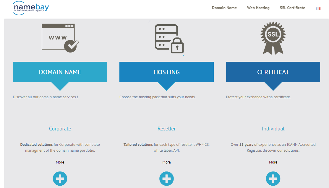 Discover all our domain name services! Choose the hosting package that suits your needs. Protect your exchange with a certificate. Dedicated solutions for corporate with complete management of the domain name portfolio. Tailored solutions for each type of reseller, WHMCS, white label, API. With over 15 years of experience as an ICANN accredited registrar, discover our solutions. In order to get your website off the ground, you will need a domain name and a hosting environment on which to build your website. Namebay offers a variety of shared hosting environments and packages to meet all of your online web hosting needs. The ideal hosting solution for your personal website or display website. To check the status of your domain name, you can find it in the client interface of your current registrar. Applied to the world of domain names, a WHOIS is a directory that lists a domain name's legal and technical information.