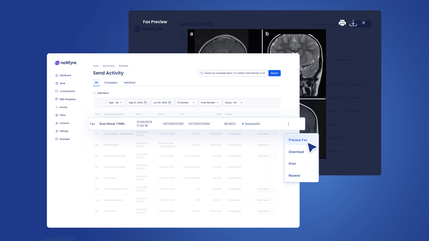 Notifyre empowers businesses and organizations of all sizes and industries to enhance their digital communications with secure, compliant text messaging and fax solutions. Whether you're managing healthcare communications, marketing campaigns, or internal workflows, Notifyre provides the tools to streamline your operations, improve efficiency, and maintain the highest standards of security and compliance.