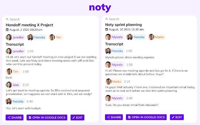 * Automatically save transcript to Google Doc, Quip, Notion, Confluence, Slack.
