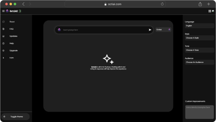 OctiAI stands as a beacon in the realm of AI prompt optimization, bridging the gap between user inputs and precise AI outputs. At its core, OctiAI specializes in transforming concise, often vague, user inputs into detailed and structured prompts, ensuring AI tools and models function at their maximum potential. The result? Users experience comprehensive AI results with minimal effort.