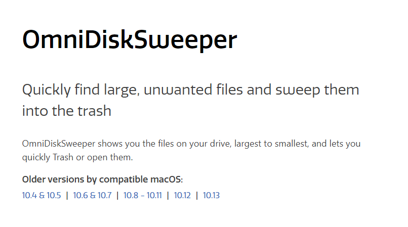 Sometimes we make software for us, and we love it so much we make it available to you, too. Quickly find large, unwanted files and sweep them into the trash. OmniDiskSweeper shows you the files on your drive, largest to smallest, and lets you quickly Trash or open them. OmniDiskSweeper 1.12 is our free app for finding disk space on your Mac, and we just updated it for Catalina (macOS 10.15)! It shows you everything on your hard drive, ranked by size, so you can see which files and folders are taking up a lot of space, which helps you figure out what you can delete, or move somewhere else, so you can free up disk space. The updates for Catalina include a Dark Mode About Panel, fixed handling of Catalina volumes, and removal of an unneeded notification. But do note that Catalina will ask for permissions for OmniDiskSweeper to access various things, it might ask, for instance, if it can access your contacts.