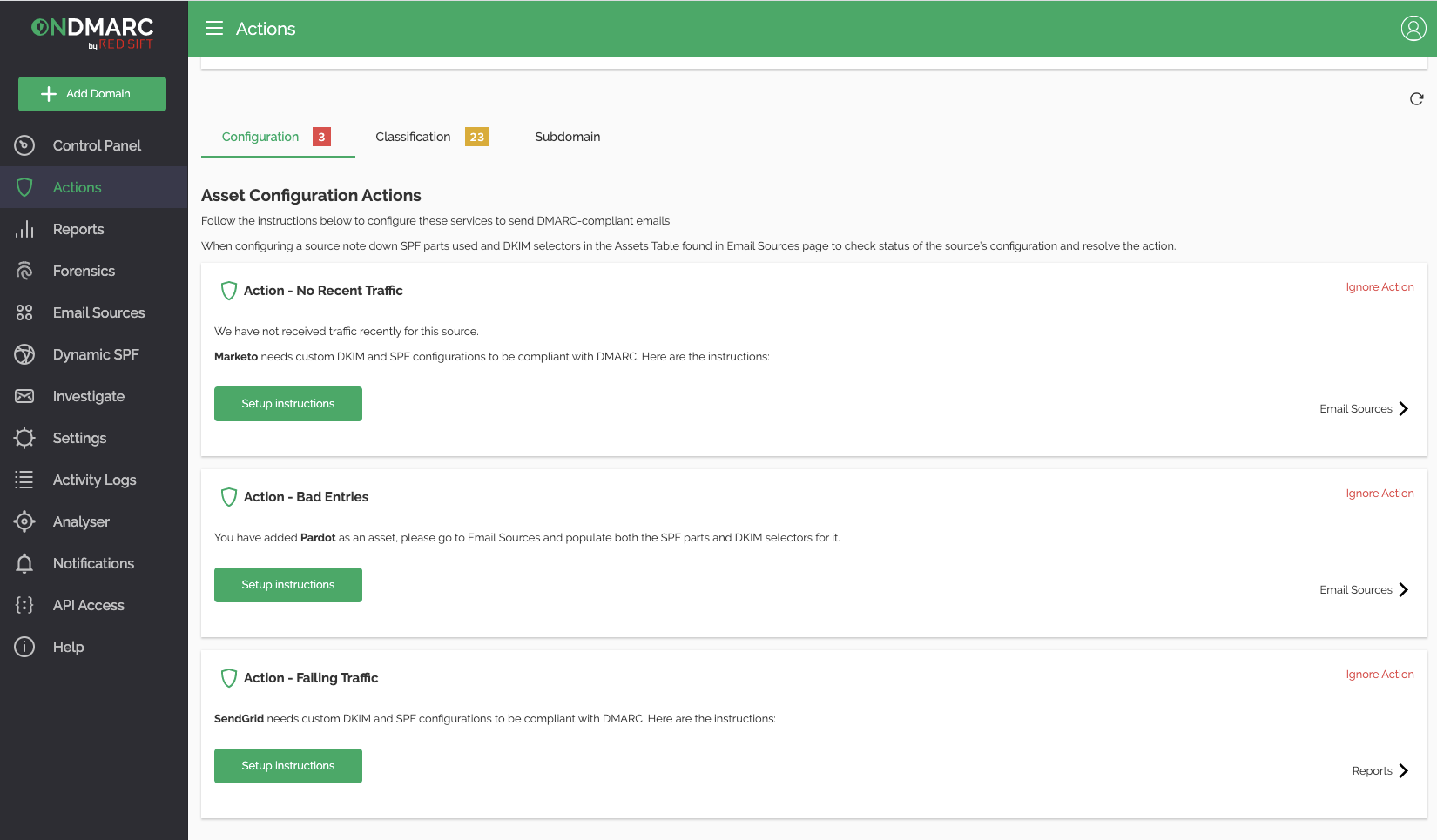 OnDMARC makes implementing and maintaining a secure DMARC policy easy. OnDMARC not only processes complex XML reports for you but, combined with machine learning and excellent customer support, gets users to full protection quickly but sustainably.