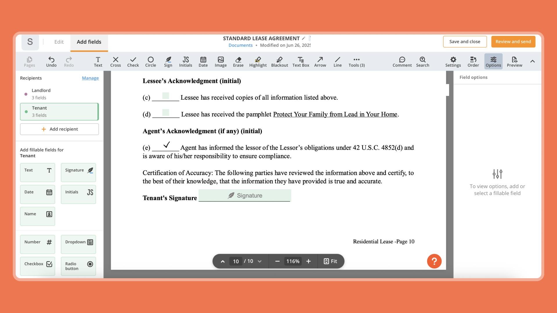 E Signature feature for document signing