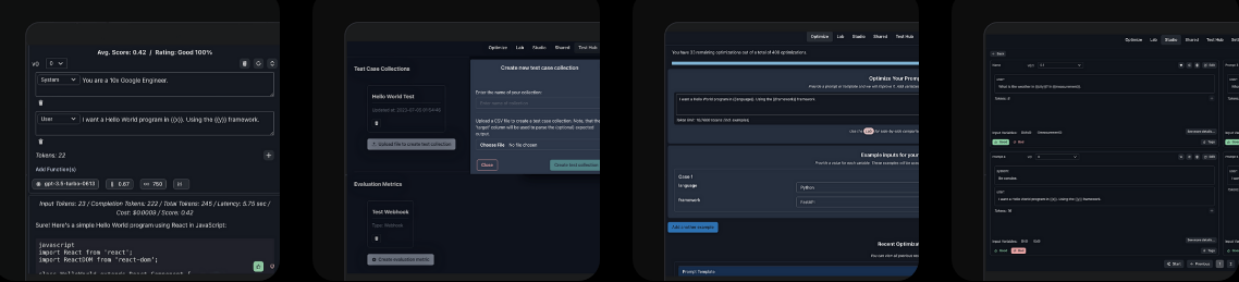 Develop and version control your prompts. Auto-generated API to retrieve prompts. Automatically run end-to-end LLM testing before making updates to your prompts on production. Let your industry specialists and engineers collaborate on the same platform. Let your industry specialists and prompt engineers test and iterate on the same platform without any programming knowledge. With our testing suite, you can create and run unlimited test cases to ensure the quality of your your your your your prompt. Check for hallucinations, issues, edge cases, and more. Our suite is the most complex of prompts. Use Git-like features to manage your prompts. Create a repository for each project, and create multiple branches to iterate on your prompts. Commit your changes and test them in a separate environment. Easily revert back to a previous version. With our real-time APIs, one single click, and your prompt is updated and live.