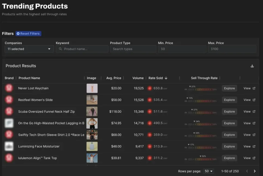 Particl's AI Platform uses the world's largest eCommerce database for lightning-fast trend identification, data-driven product launches, and price modeling designed to help you maximize returns. Leverage our AI-driven pricing models to analyze price and sales data from across and market to uncover pricing recommendations that will lead to the greatest return. Discover new product opportunities, be the first to know about the fastest-growing trends, and develop best-selling products through the Particl product development platform. Analyze pricing with product sales data from 500M+ SKUs to monitor pricing trends market-wide. Understand quarterly pricing changes and how you can better optimize to grow your revenue.