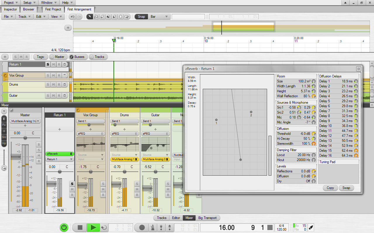 Grab yourself a nice audio interface. Plug in a microphone or a keyboard. Add a track, press record, and you got it. Cut, move, stretch, copy, paste, delete, align, trim, crossfade, rename, snapshot, zoom, transpose, quantize, swing, drag, drop. Import audio or MIDI from your hard drive or the Freesound database. All with unlimited undo/redo. All in the same window. Mute, solo, fader, automate, EQ, dynamics, insert, send, pre-fader, post-fader, sync, monitor, isolate. Floating point fidelity, the most flexible mixer architecture in the industry, hundreds of plugins, and external control surfaces. Ardour's core user group, people who want to record, edit, mix and master audio and MIDI projects. When you need complete control over your tools, when the limitations of other designs get in the way, when you plan to spend hours or days working on a session, Ardour is there to make things work the way you want them to.