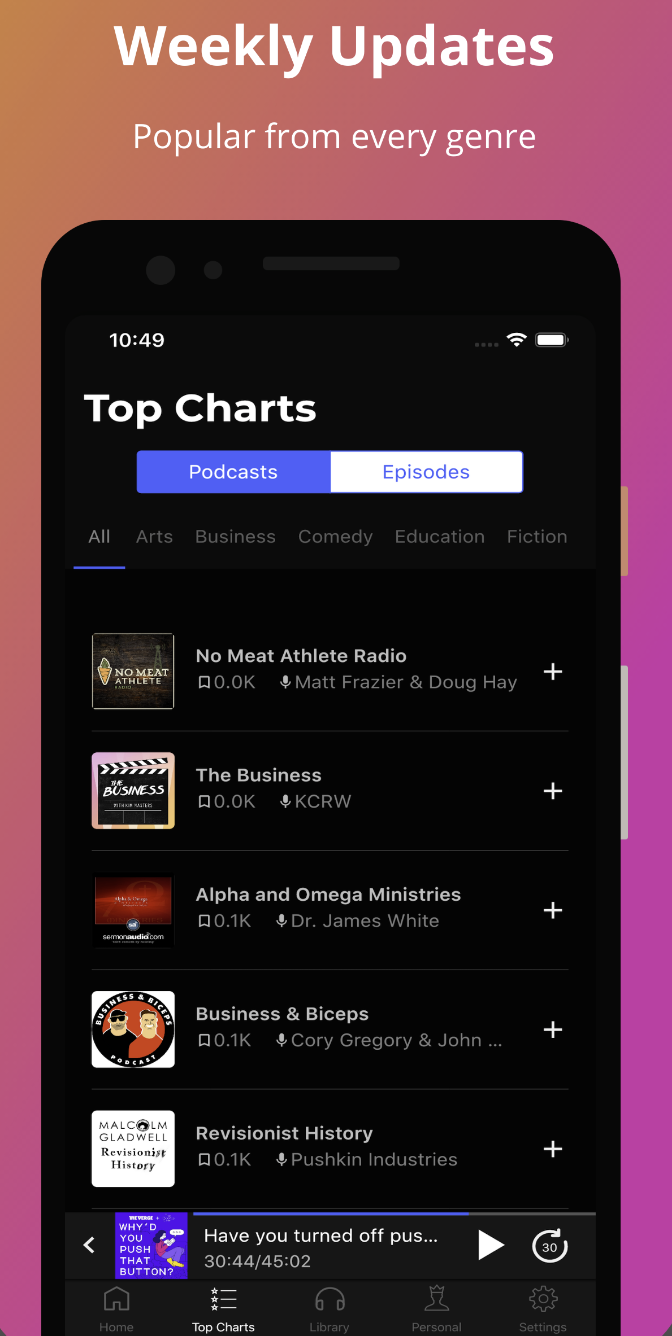 With Podcast & Radio iVoox you can listen, share and download podcasts, radio shows and much more for free, when you want, where you want. Courses, conferences, classes, lectures, audio books, children’s stories, audio guides, stand up comedy, stories, music and concerts, poems, biographies and even meditation sessions. Access a wide selection of podcasts, radio shows and tracks, all carefully categorised and ordered. The only podcast app which allows you to listen to them without subscribing. Choose whether to subscribe, get notifications or download them automatically. The app learns your tastes and recommends new tracks according to your interests. Listen to live radio, find new stations by genre and save your favourite stations to go back to them easily. Full control of the audio: change playback speed, skip or rewind, turn on the sleep timer or car mode.