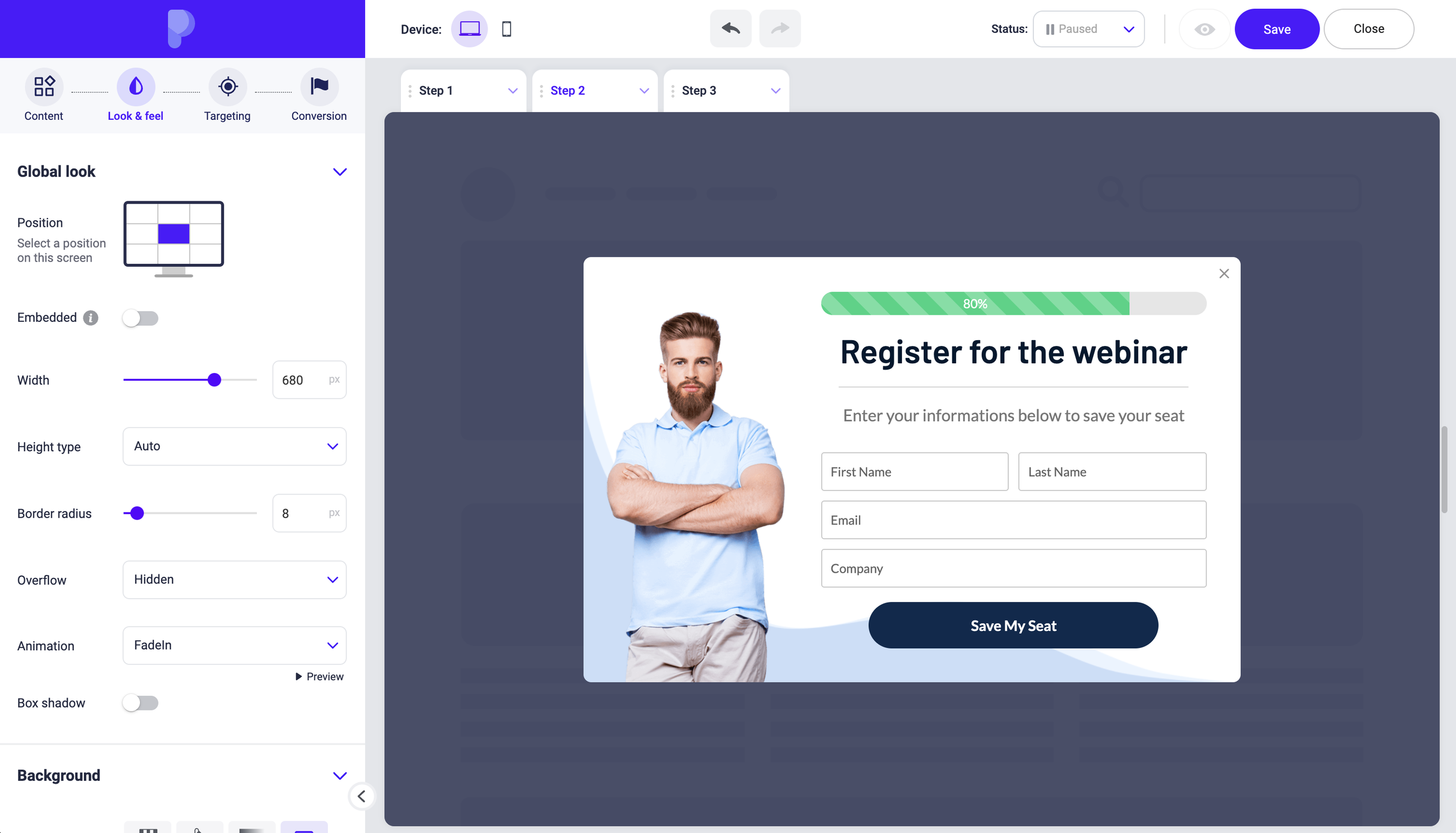 Engage and convert more visitors on your website: PrettyLead helps you to create engaging popups, notification bars, fullscreens and embedded forms to boost your conversions and sales on your website. Easily launch popups, sticky bars, full page or even embed PrettyLead directly into your page, all with just a few clicks.