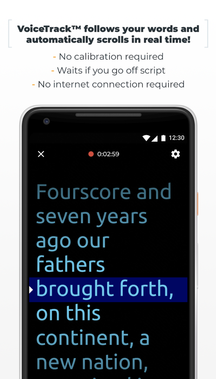 PromptSmart Pro is the market leader in mobile teleprompter software. With our patented VoiceTrack speech recognition technology, PromptSmart follows your every word during your speech, automatically scrolling the text at your natural pace in real time without the need for an internet connection. If you ad-lib or go off script, PromptSmart stops and waits for you to go back on script. This popular, unique scrolling method makes PromptSmart a state of the art teleprompter app, unrivaled anywhere in the world, right in your pocket! PromptSmart is a versatile companion for any filming environment, whether in the studio or out in the field. Professional broadcasters, newsrooms, and television stations have already adopted our VoiceTrack technology via our mobile app.