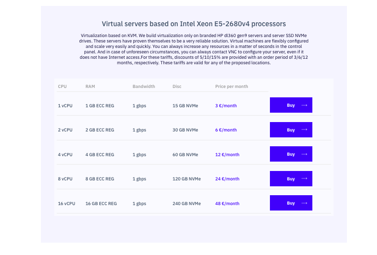 Pros: The prices for the servers are adequate, there is something to compare with. Excellent uninterrupted speed, technical support works at a decent level, we always get qualified help.