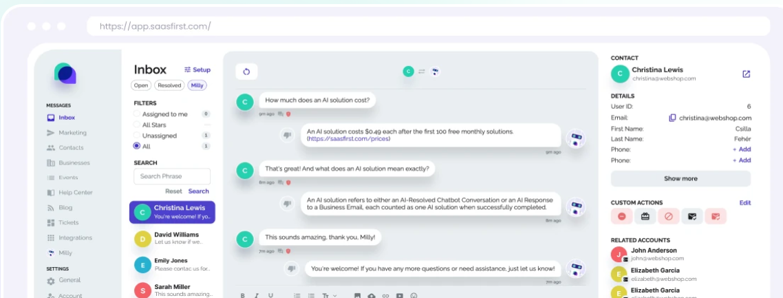 Easy to deploy and operate—no coding skills required. GDPR-compliant and secure. Proven scalability for eCommerce, SaaS, and service industries. 7-day free trial available.