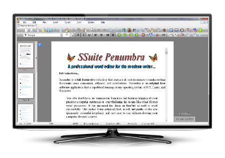SSuite Penumbra is a full featured word editor that creates rich text documents to make writing documents more convenient, efficient, and comfortable. Penumbra is an original free software application that is capable of running on any operating system.