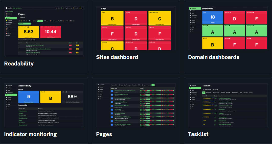 ScanGov is a government digital experience platform designed to help public agencies monitor, improve, and maintain their websites through automated, standards-based analysis. It combines continuous scanning with clear guidance so digital teams can identify issues and deliver better online services to the public. It provides real-time monitoring and reporting across eight key areas, including accessibility, performance, security, SEO, content quality, and AI readiness, giving organizations a holistic view of their digital presence. Users can track progress through dashboards, domain and site views, and prioritized task lists that highlight the most impactful fixes. It generates pre-built bug reports and integrates with tools like GitHub to streamline remediation workflows and reduce manual auditing effort. ScanGov also enables public dashboards and letter-grade scoring, making it easier to communicate status to both technical and non-technical stakeholders.