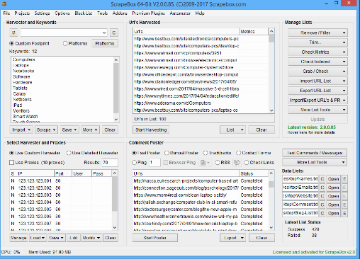 The most powerful and popular SEO tool of its kind! Used by SEO companies and freelancers from all over the world, trusted by major Fortune 500 companies. Exceptionally fast operation with multiple concurrent connections. Numerous options for expansion and customization to suit your needs. Hundreds of features to complement your SEO at an affordable price. Over 30 free addons, to expand ScrapeBox with numerous new features. Numerous support video’s, guides and 24/7 tech support staff available. Originally released in 2009 and still going strong in 2017 with frequent updates. Described by many users as the Swiss Army Knife of SEO! Years later, people are still finding innovative new uses for ScrapeBox to help with their day to day SEO and internet marketing needs. Extensive keyword harvester, to produce thousands of long-tail keywords from a single base keyword. Powerful proxy harvester and tester, to ensure you can keep your work private through the use of thousands of free proxies.