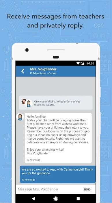 Bringing everyone together when you are apart is easier said than done and that is where ClassTag comes in with endless possibilities. Messages, announcements, videos, pictures, library, calendar, parent-teacher conferences, actionable engagement stats and much more in one place. Parents don’t have to download an app to join the party. ClassTag’s smart messages reach all parents based on their preferred channel (SMS, email, app, web or paper) automatically translated into 100+ languages. Share classroom moments through messages, videos, file libraries and virtual backpacks - all in one place. You send a message, either directly to a parent or to the whole class. Parents automatically receive it however suits them with ClassTag’s unique “smart messaging”. And you don’t have to share your personal deets.