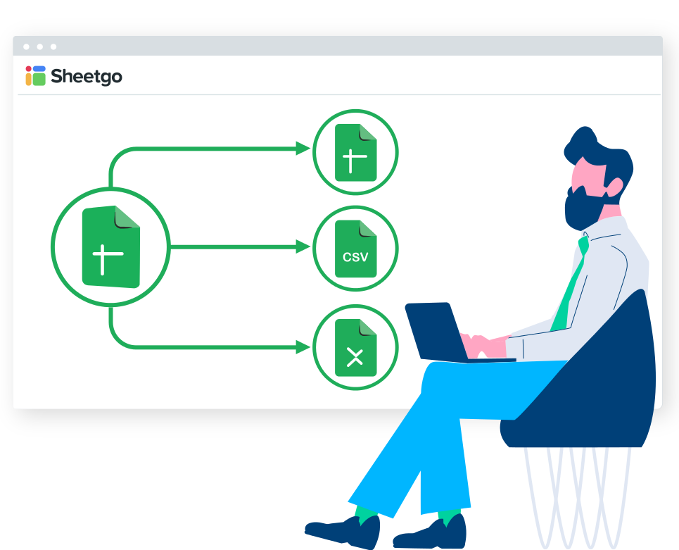 Sheetgo works with Google Sheets, Excel and CSV files. Say goodbye to manual work and create an automated workflow today at sheetgo.com.