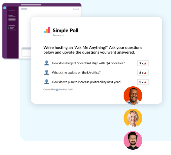 Seamlessly engage audiences across hybrid workspaces through live online polling, surveys, Q&As, quizzes, word clouds, and more. Powering hybrid work and inclusive conversations. Visualize employee feedback in real time with a variety of activities, then measure engagement, follow up on feedback, and uncover next steps. Organize engaging content with fully customizable Folders and a navigation system built to fit your team's unique workflows. Download the Poll Everywhere app for PowerPoint, Keynote, or Google Slides and add polls to your existing presentation decks in just a few clicks. Over 4 million customers have trusted Poll Everywhere to keep their data safe. Our mission and reputation rest on our ability to provide users with industry-leading security across all features and activities. Enjoy all the things you love about Poll Everywhere, directly in Webex. Engage your audience, capture feedback, and present live results all in one place from wherever you work.