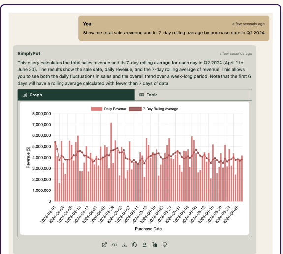 No more complicated SQL queries or complex programming languages, simply type in your question and let SayData do the rest. With natural language processing capabilities, easily explore your data and gain insights that might have gone unnoticed. We offer a comprehensive suite of data visualization and analysis tools, enabling you to explore your data and uncover insights in real time. Create custom dashboards and reports that showcase your data in a way that's easy to understand and act upon instantly. SayData is designed to understand and answer questions that are unique to your business. Out-of-the-box dashboard portal where your users can log in and securely view dashboards with their own data. Share analytics via a simple shareable link. Easily integrate into your Slack workspace. SayData is architected to ensure complete data privacy with best-in-class measures. We go through annual penetration tests to ensure our security is top-notch.