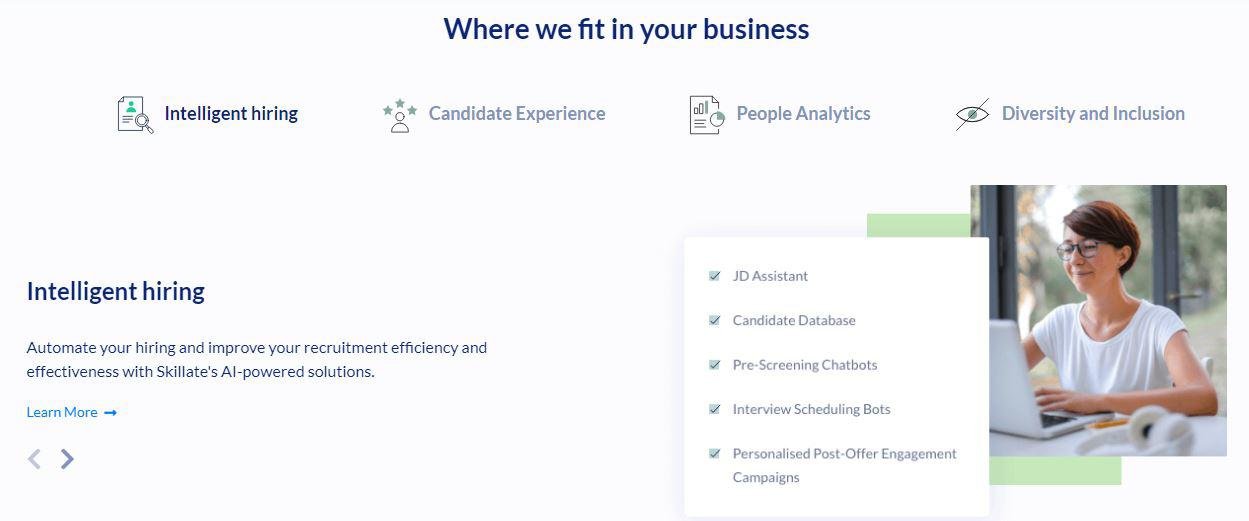 Skillate is an advanced decision-making engine to make hiring easy, fast, and transparent. Skillate integrates with the existing Taleo, SuccessFactors, Workday, Smartrecruiters and helps in optimizing the entire value chain of recruitment beginning from creating the job requisition, to resume matching, to candidate engagement till the candidate gets hired. Automate your hiring and improve your recruitment efficiency and effectiveness with Skillate's AI-powered solutions. Never miss out on a quality candidate with automated resume matching. Upgrade your screening through AI chatbot. Converts passive profiles to active candidates. Use of Deep Learning to extract information from the most complex resumes. Skillate solutions enable the TA team to write detailed JDs, provide real-time status updates, and improve the employer branding by providing a better candidate experience.