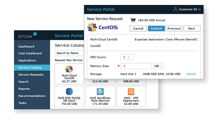 Snow Commander is a powerful hybrid cloud management tool that leverages automation to deliver business agility, oversight, and efficiency. This tool enables IT to eliminate cumbersome, manual approval processes and provide end users with a quick, self-service way to access both public and private clouds that won’t slow down the most agile development teams. Increase agility and efficiency with streamlined hybrid cloud management. Snow Commander uses automation to provide end users with quick and easy access to both public and private cloud resources. The comprehensive self-service portal provides IT with the visibility needed to effectively govern resource usage, while self-service provisioning automation capabilities ensure that the most agile development teams don’t miss a beat. A feature-rich workload engine enables change orchestration with cost analytics, governance policy, and automation. It also boasts extensible functionality to empower process transformation.