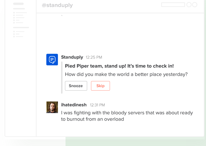 Overall: Standuply converts business work into automating. We use it with Slack and its bot commands completely changed our old traditional working methods. It helps us to combine our workforce remotely provides reporting.