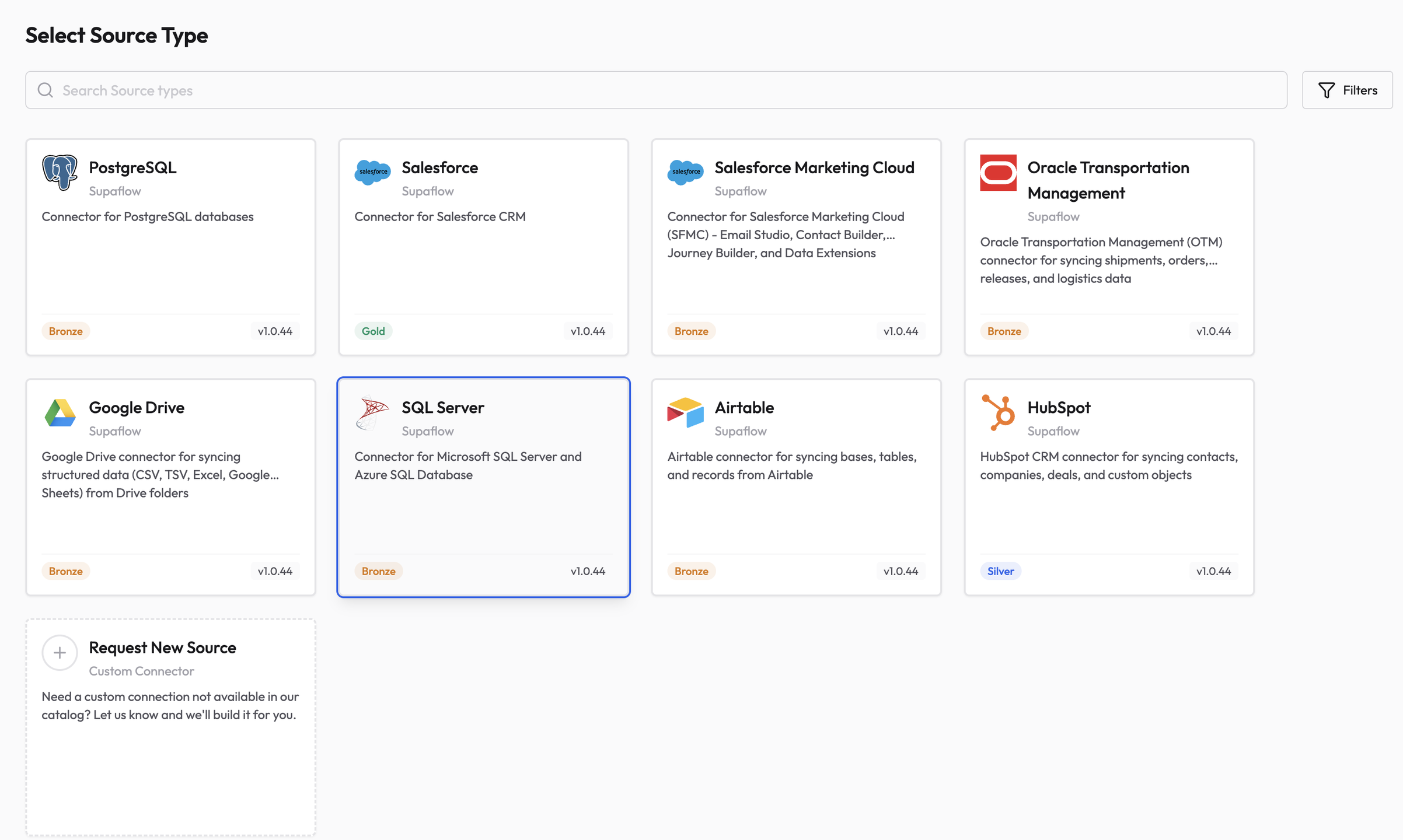 Pull data from Amazon/AWS products, Google products, Microsoft products, Avionte, Backblaze, BioTrackTHC, Box, Centro, Citrix, Coupa, DigitalOcean, Dropbox, CSV, Eventbrite, Facebook Ads, FTP, Firebase, Fullstory, GitHub, Hadoop, Hubic, Hubspot, IMAP, Jenzabar, Jira, JSON, Koofr, LeafLogix, Mailchimp, MariaDB, Marketo, MEGA, Metrc, OneDrive, MongoDB, MySQL, Netsuite, OpenDrive, Oracle, Paycom, pCloud, Pipedrive, PostgreSQL, put.io, Quickbooks, RingCentral, Salesforce, Seafile, Shopify, Skybox, Snowflake, Sugar CRM, SugarSync, Tableau, Tamarac, Tardigrade, Treez, Wurk, XML Tables, Yandex Disk, Zendesk, Zoho, and more!