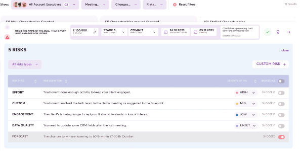 Forecasting, pipeline management, and conversation intelligence in one tool, powered by AI. Implement a strong forecasting and revenue process on top of an automated data layer and win more. Create alerts and monitor risks based on best practices and your process, to make sure nothing goes unnoticed and you have everything under control. Focus on the deals that need your attention and disqualify the ones you should not care about. Become confident about your forecast with two levels of forecast (rep and manager), our AI-driven recommendations, and the history of every change. You know what the best process is for your organization, but not everyone follows it. Create a library of knowledge to onboard new hires, and collaborate across the platform or slack. We record each conversation and analyze them with AI, to understand behaviors so that you can win more. Leverage AI without relying on manual input for your CRM.