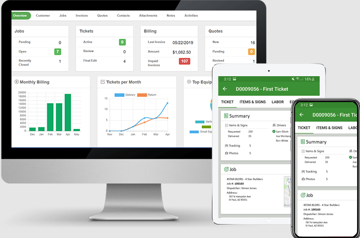 Schedule your drivers for various jobs with simple drag and drop. Easily identify which drivers have jobs assigned and which drivers are free. Increase efficiency and productivity. See where your drivers are real-time on a map. You will have the confidence to bid on larger projects as you will know you can keep track of all your equipment and easily create invoices for your customers. TCR Online provides control over all of your specialized needs. TCR Mobile App is designed for drivers to use in the field to complete their tickets electronically, essentially doing away with paper tickets. The simple design allows drivers to record the start/end of their shifts/breaks, add misc. time spent in the yard or loading the truck as well as complete tickets.