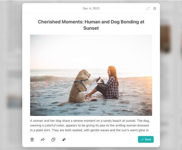 Turn your voice memos into clear content. Speak your thoughts, ideas, or anything else. Don't stress about pauses or mistakes, just talk naturally. With the lastest AI technologies, TalkNotes will transcribe your voice into any kind of content. Journal entry, cleaned up transcript, blog. Once your note is ready, you can tweak it to your liking. Add tags to organize your notes, change the style, or even edit the transcript. Capture your creative sparks on the go. TalkNotes transcribes your brainstorming sessions, so you can focus on your next big idea without missing a beat. Create content effortlessly. Dictate your thoughts directly into text and speed up the writing process. Ideal for bloggers, writers, and content marketers. Make meetings more productive! Record discussions, transcribe them instantly, and never miss an important detail again.