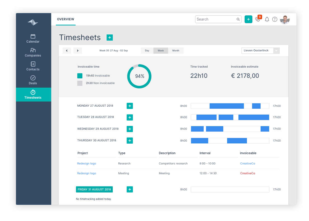 As an entrepreneur, you have your hands full with running your business and everything that comes with it. That's why Teamleader makes your work easier and your mind free. With our business software, you can create quotes, manage customer relationships, invoice, and plan work, all in one place. This ensures that all relevant information is kept from being scattered across different inboxes, Excel sheets, and software. The result is a perfect overview of your sales opportunities, projects, and payments and, perhaps even more crucially, a sharp picture of your business's performance.